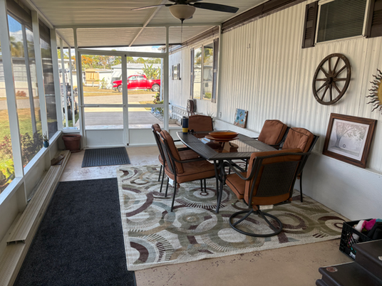 If you're searching for a winter retreat, this is the perfect choice. This well-maintained 2-bedroom, 1-bathroom home boasts newer appliances, an updated bathroom, laminate flooring throughout, a four-season room, and a separate screened-in porch on a canal leading to Lake Huntley, complete with a private dock. The home is situated in Lakeside Village Mobile Home Park.